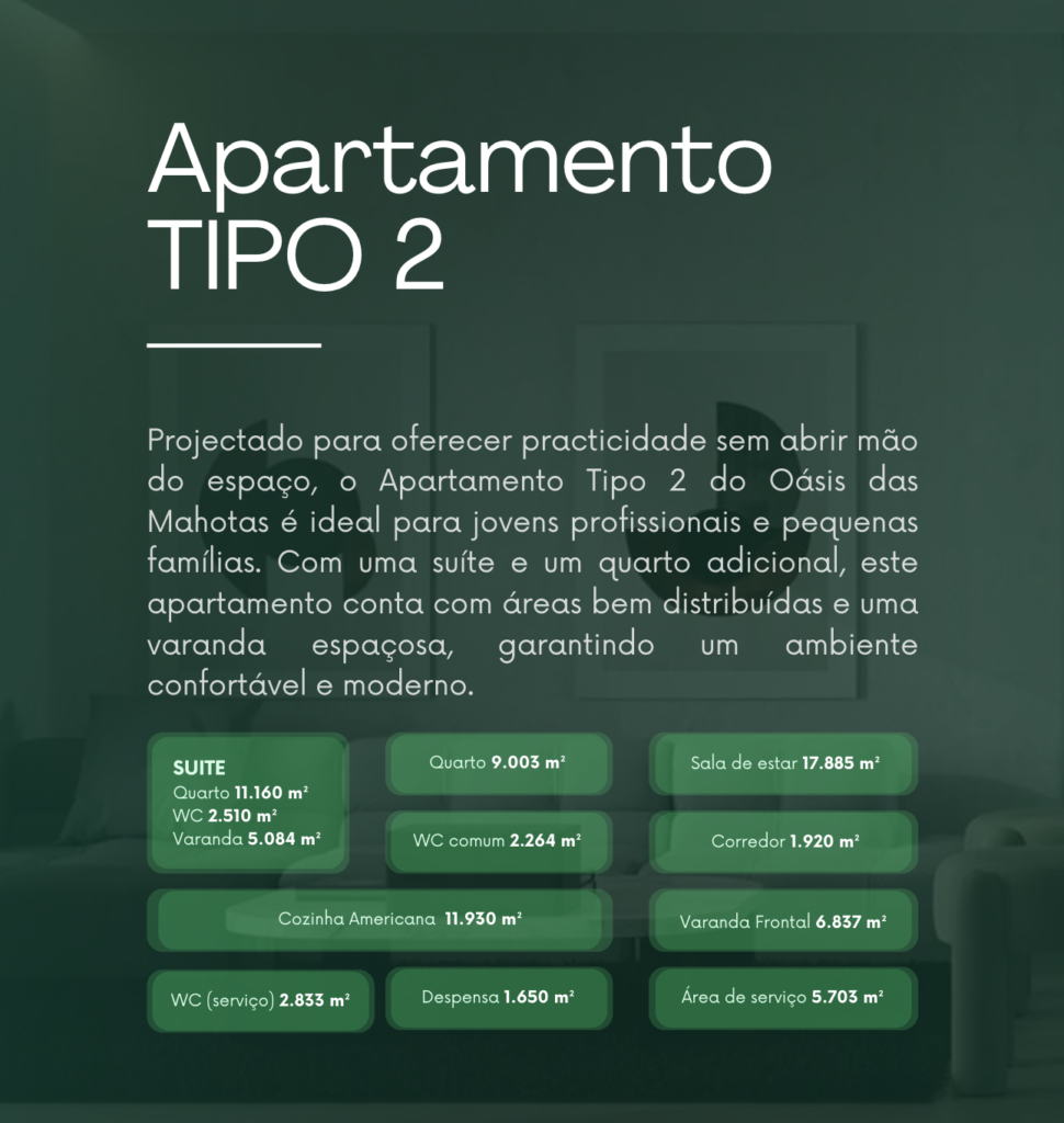 Além das unidades bem planeadas, o Oásis das Mahotas oferece infraestrutura completa com piscina, playground, áreas verdes, estacionamento privativo e segurança 24h.